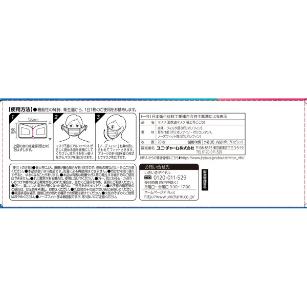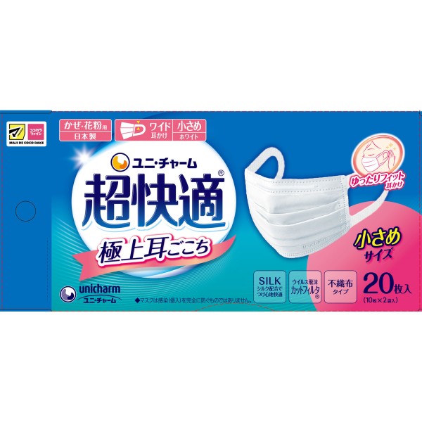초쾌적 마스크 최고의 귀 편안함 작은 사이즈 20매 유니참 > 대용량