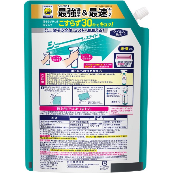 배스 매직클린 에어 제트 허벌 시트러스 향 리필용 1100ml 카오 > 욕실 클리너