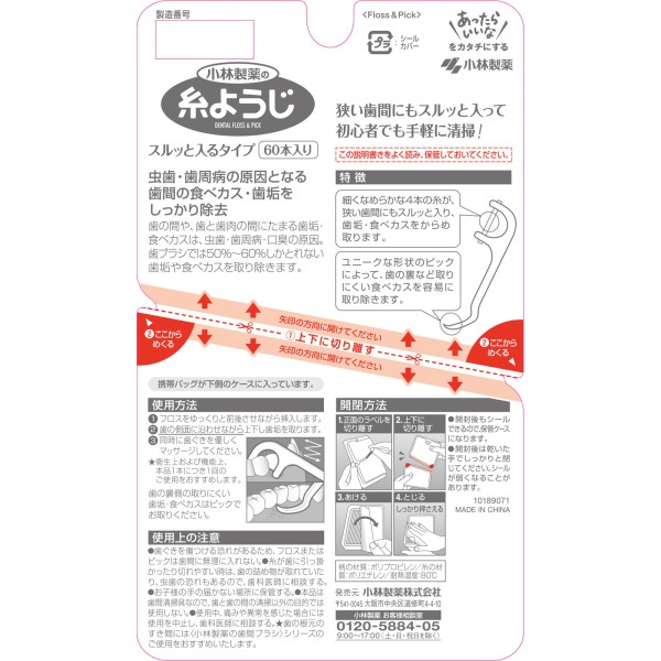 들어가기 쉬운 실 이쑤시개 60개 고바야시제약 > 치실