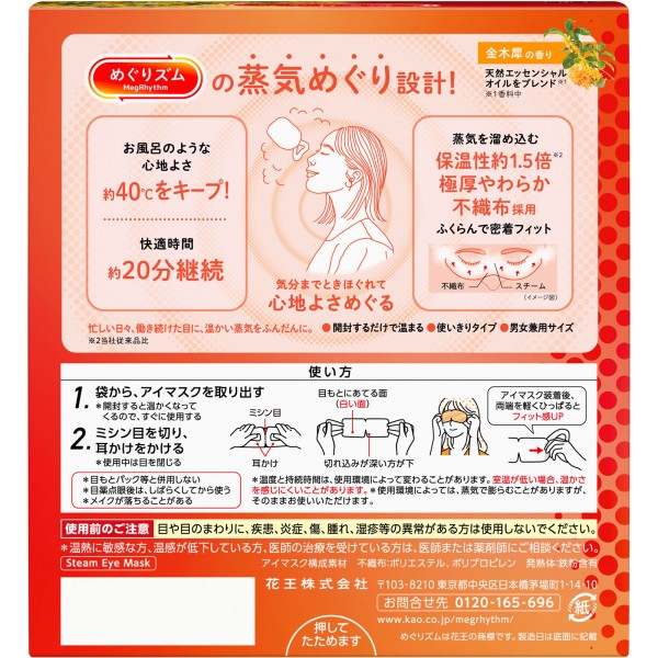 메구리즘 증기 나오는 아이 마스크 금목서 향 12매 카오 > 온열 용구