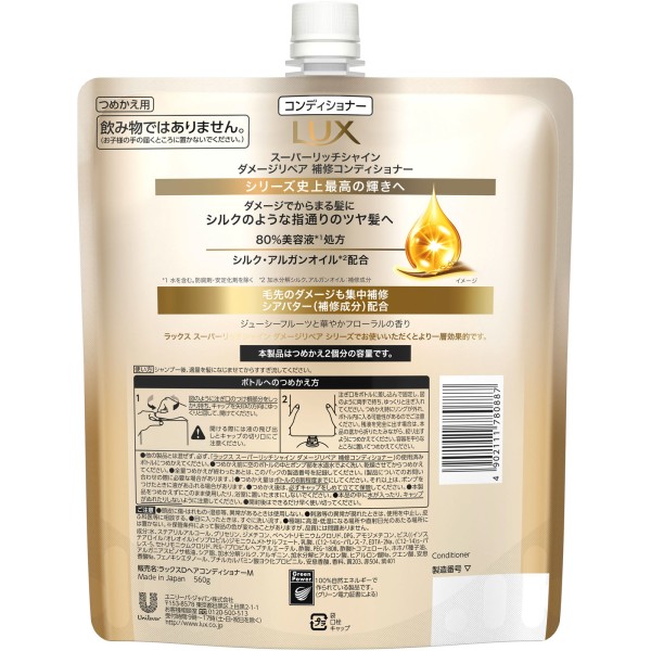 럭스 슈퍼 리치 샤인 데미지 리페어 보수 컨디셔너 리필용 560g 유니레버재팬 > 럭스