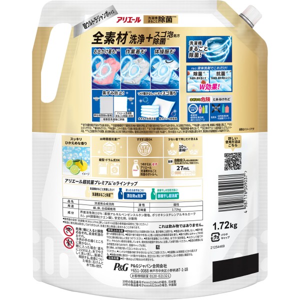 아리엘 젤 살균 플러스 초울트라 점보 1720g P&G재팬 > 액체