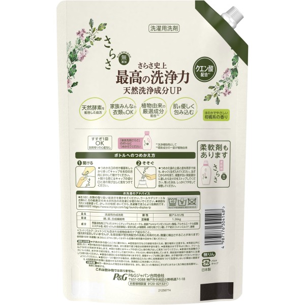 사라사 세탁 세제 액체 은은하고 부드러운 감귤계 향 리필 1260g P&G재팬 > 액체