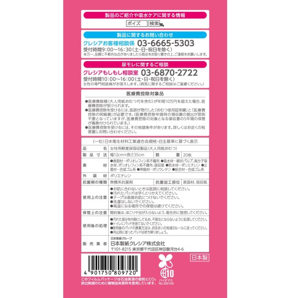 포이즈 피부 케어 패드 안심 슈퍼 알뜰 팩 20매 일본제지크레시아 > 패드 (다량)