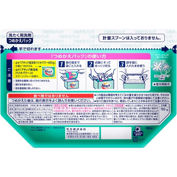 어택 고활성 바이오 파워 리필용 750g 카오 > 분말