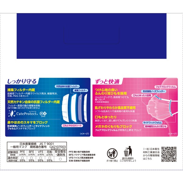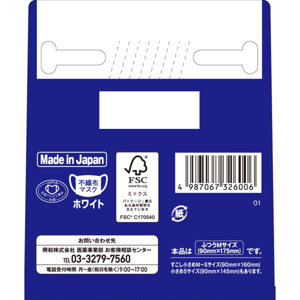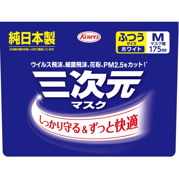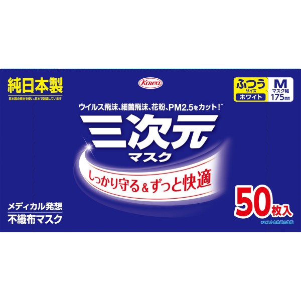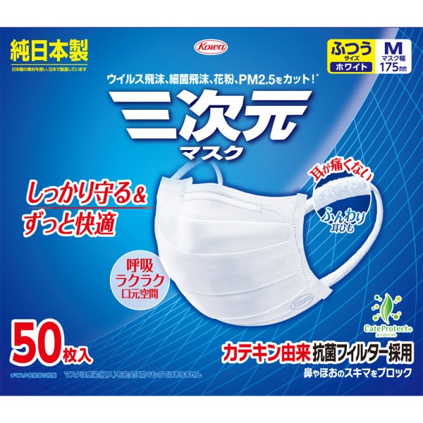 3차원 마스크 보통 M사이즈 화이트 50매 코와 > 대용량