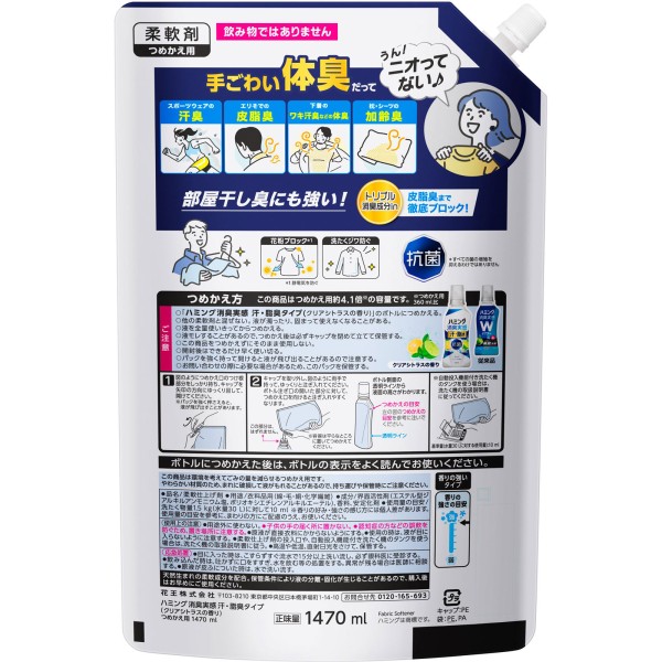 해밍 소취 실감 땀·기름 냄새 타입 시트러스 1470ml 카오 > 농축 방취