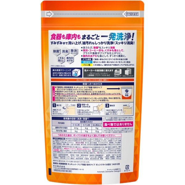 식기세척기 전용 큐큐트 클리어 살균 분말 타입 오렌지 오일 배합 리필용 800g 카오 > 식기세척기용