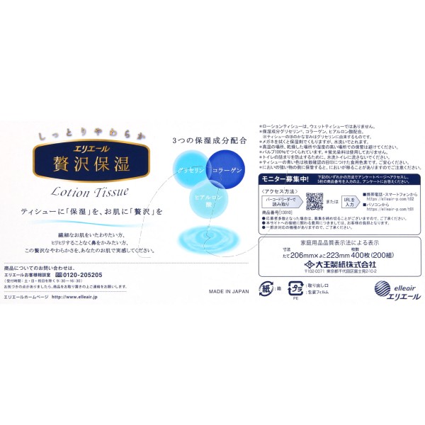 에리에르 사치스러운 보습 티슈 200W 3P 다이오제지 > 보습