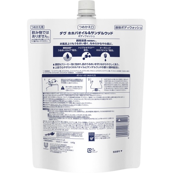 도브 바디 워시 호호바 오일&샌달우드 리필용 640g 유니레버재팬 > 범용(다브)