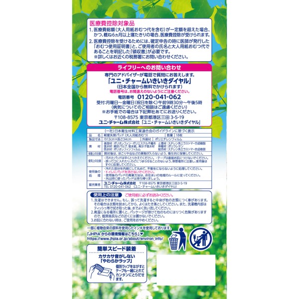 라이프리 상쾌 패드 특히 많을 때도 1매로 안심용 18매 유니참