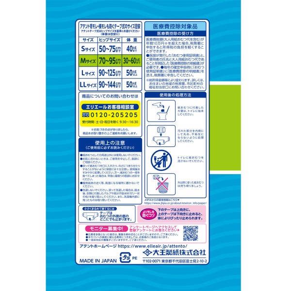 아텐토 소취 효과 포함 테이프식 M 18매 다이오제지 > 테이프 고정 타입