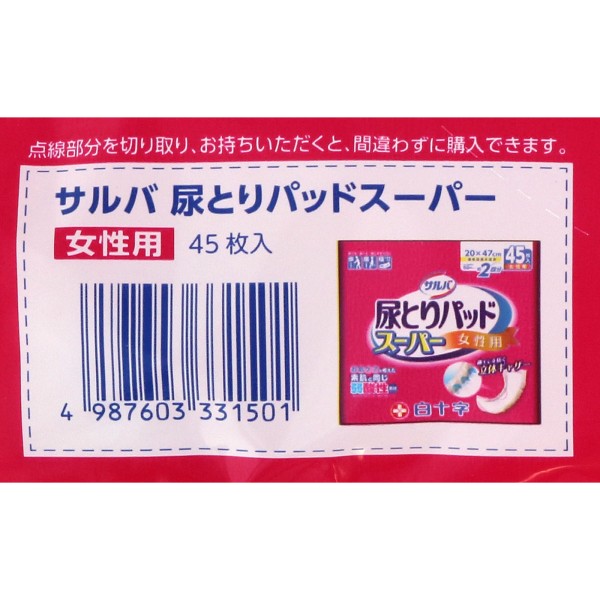 살바 소변 패드 슈퍼 여성용 45매 시로쥬지 > 여성용