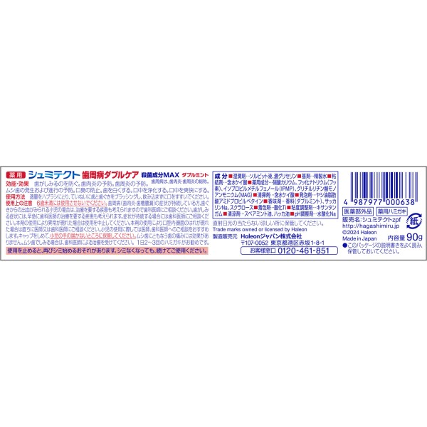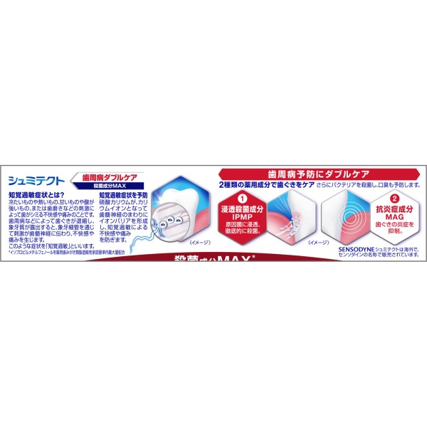 ダブルで歯周病予防。知覚過敏症状も防ぐ。殺菌成分MAX。ダブルミントのフレーバー。