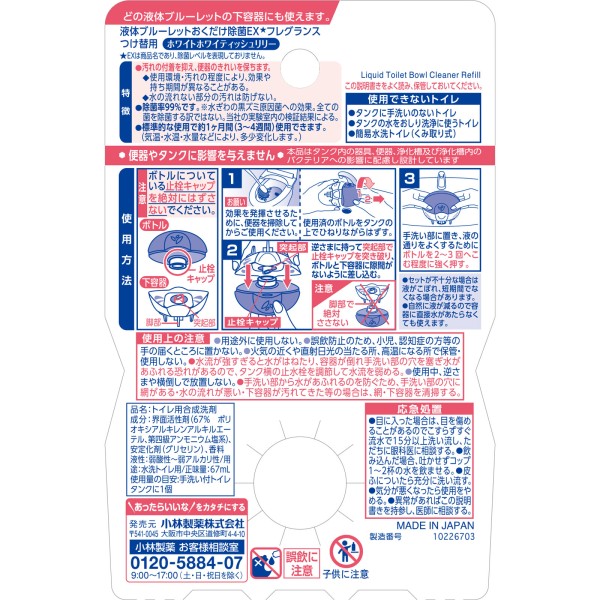 액체 블루렛 내려놓기만 살균 EX 프래그런스 교체품 화이트 화이티시 릴리 67ml 고바야시제약 > 변기 탱크용 액체