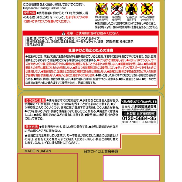 키리바이 핫팩 신발용 깔기 발끝 베이지 15P 고바야시제약