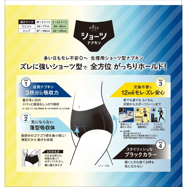 에리스 쇼츠 낮·밤 장시간용 블랙 L~LL 4매 다이오제지 > 엘리스 소하다노 기모치