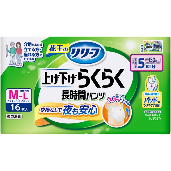 리리프 팬츠 타입 올리기·내리기 편한 장시간 팬츠 5회분 M-L 16매 카오 > 장시간