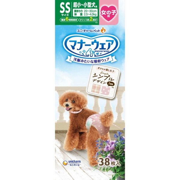 매너웨어 여자아이용 SS사이즈 심플 디자인 38매 유니참펫케어 > 생리용