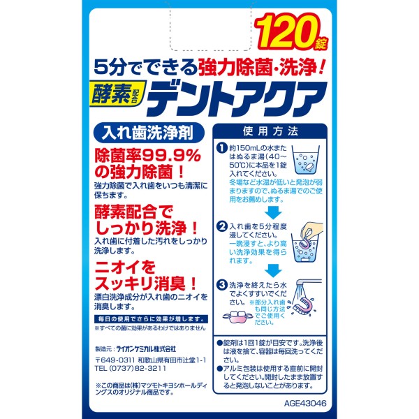 MK 덴트 아쿠아 틀니 세정제 겸용 타입 120정 라이온케미컬 > 틀니 세정제(총틀니용)