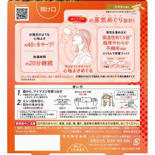 메구리즘 증기 나오는 아이 마스크 편백나무 향 5매 카오 > 온열 용구