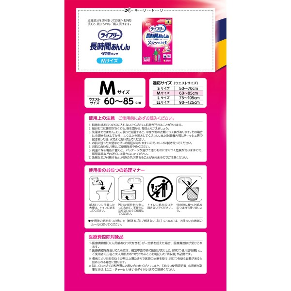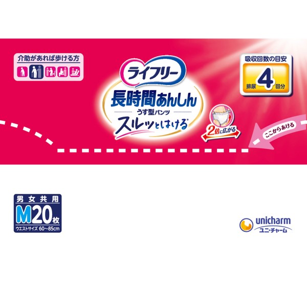 라이프리 장시간 안심 얇은 팬츠 M 20매 유니참 > 슬림형