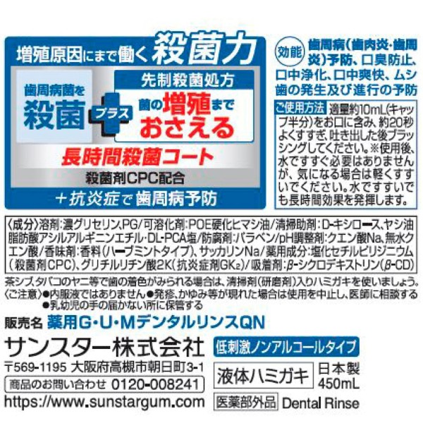 GUM 플러스 덴탈 린스 저자극 논알코올 타입 450ml 썬스타 > 치주병 예방
