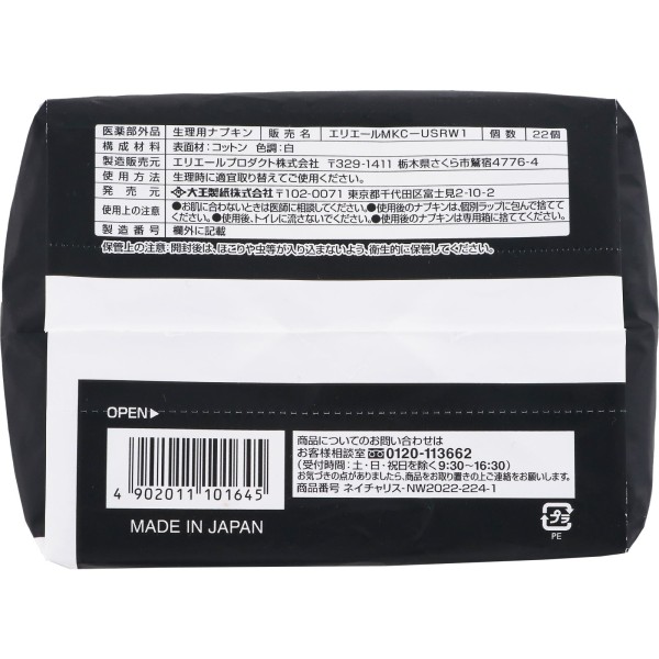 네이처리스 오가닉 C 생리대 20.5cm 22매 다이오제지 > 네이처리스