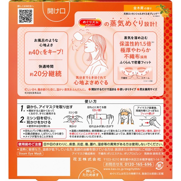 메구리즘 증기 나오는 아이 마스크 금목서 향 5매 카오 > 온열 용구