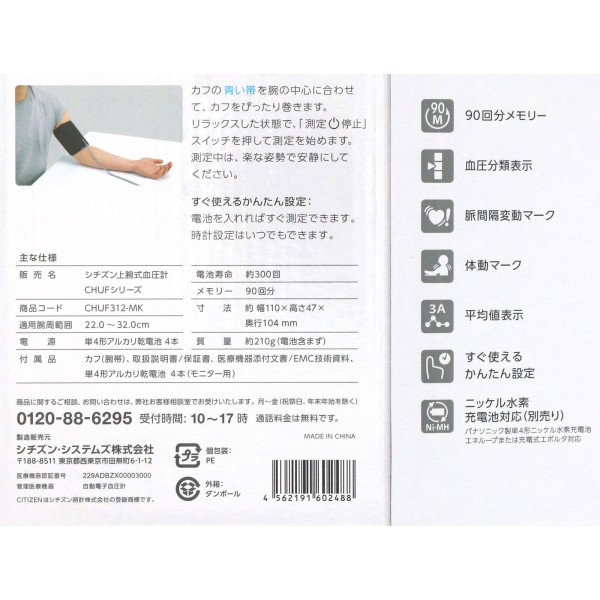 MK 상완식 혈압계 CHUF312-MK 시티즌시스템즈