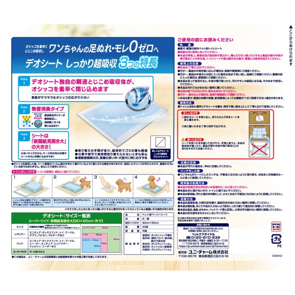 데오 시트 확실한 초흡수 무향 소취 타입 슈퍼 와이드 23매 유니참펫케어 > 스탠다드