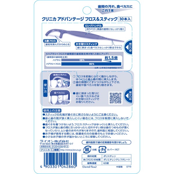 클리니카 어드밴티지 플로스&스틱 30개 라이온 > 치실