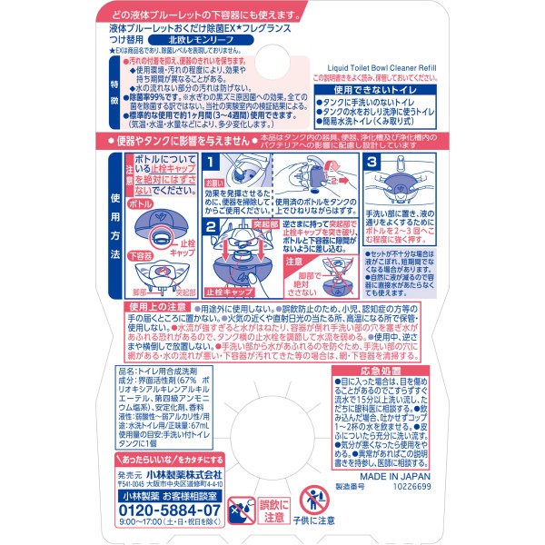 액체 블루렛 내려놓기만 살균 EX 프래그런스 교체품 북유럽 레몬 리프 67ml 고바야시제약 > 변기 탱크용 액체