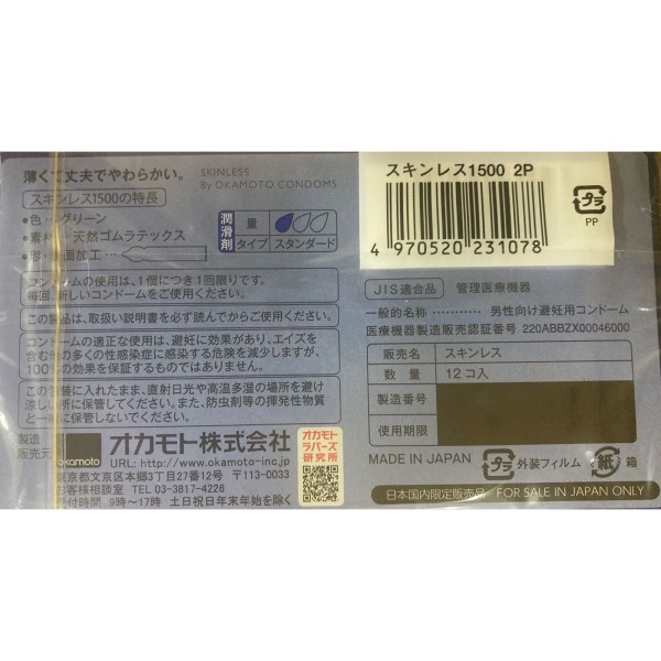 스킨레스 1500 2개 오카모토 > 2개 팩