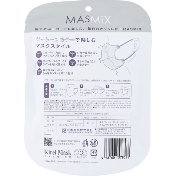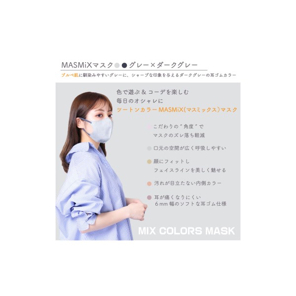 MASMIX 마스크 그레이×다크 그레이 7매입 가와모토산업 > 입체 타입