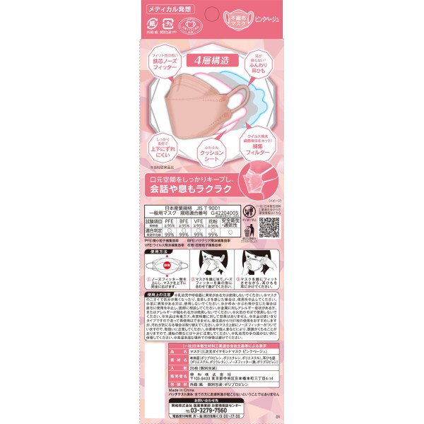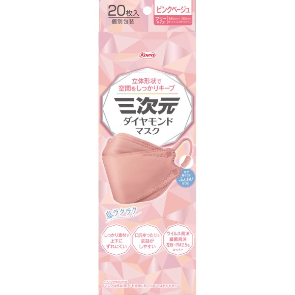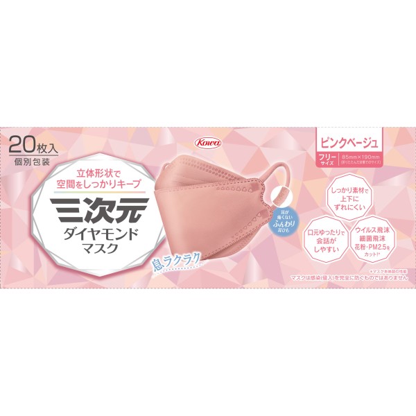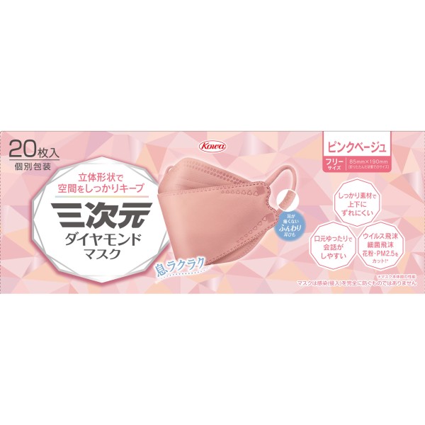 3차원 다이아몬드 마스크 F사이즈 P 베이지 20매 코와 > 입체 타입