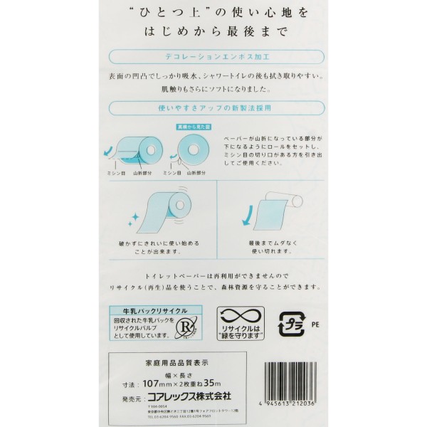 프리미엄 신라 F 더블 12롤 35m 코어렉스 > 샤워용