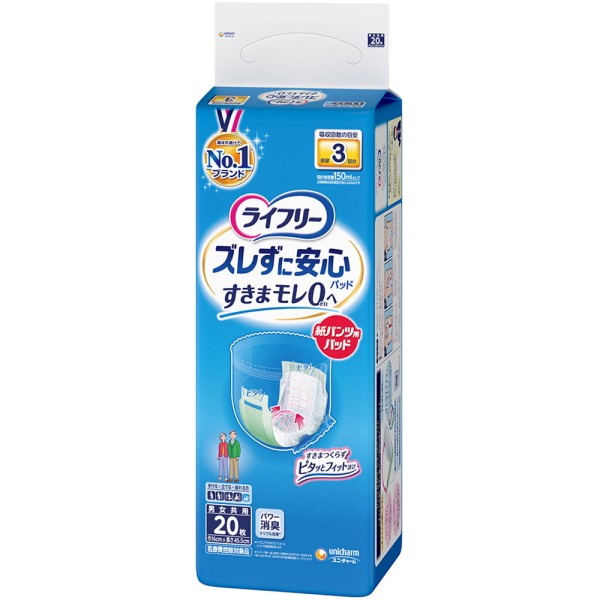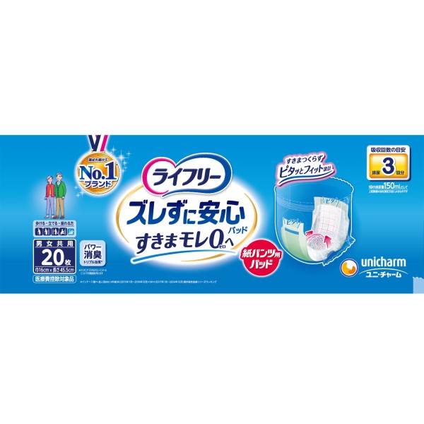 라이프리 흘러내림 없이 안심 종이 팬츠용 소변 패드 장시간 20매 유니참 > 팬티용 (남녀 공용)
