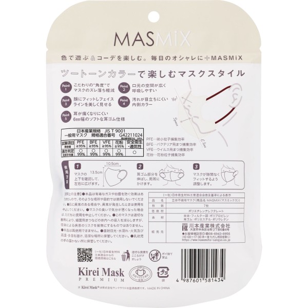 MASMIX 마스크 앰버 화이트×와인 레드 7매입 가와모토산업 > 입체 타입
