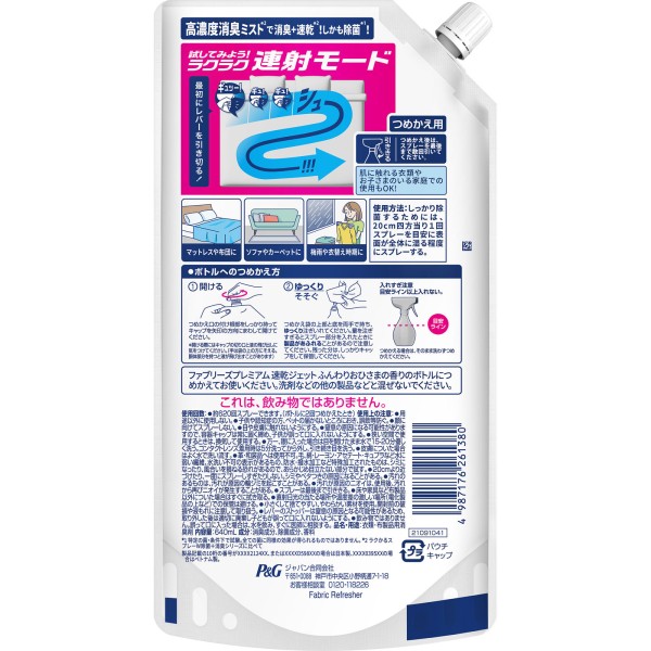 파브리즈 포용 속건 제트 소취 살균 스프레이 폭신한 햇살 향 리필 640ml P&G재팬 > 의류용 케어제