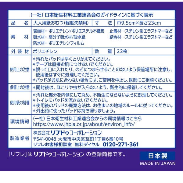 리프레 초박형 안심 패드 80cc 22매 리브두코퍼레이션 > 패드 (중량)