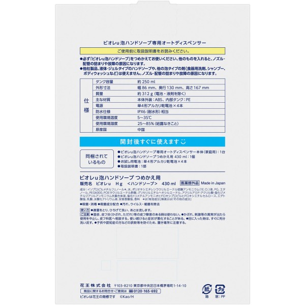 비오레U 자동으로 나오는 거품 핸드소프 디스펜서 본체+리필용 430mL 카오 > 비오레U 거품