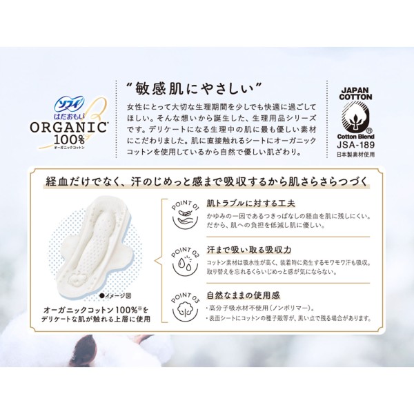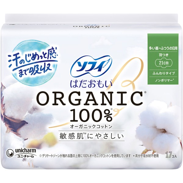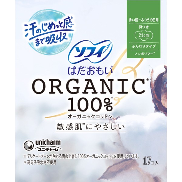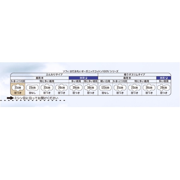 소피 하다오모이 오가닉 코튼 많은 낮 보통의 날용 날개 포함 21cm 17매 유니참 > 하다오모이 오가닉