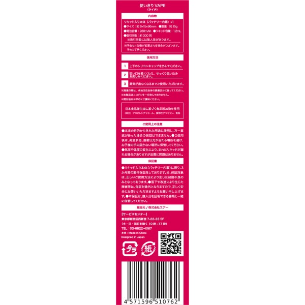 【300回吸引可能】吸引回数:約300回で吸いごたえは抜群です。※吸引回数は吸う時間の長さと強さによって個人差があります※