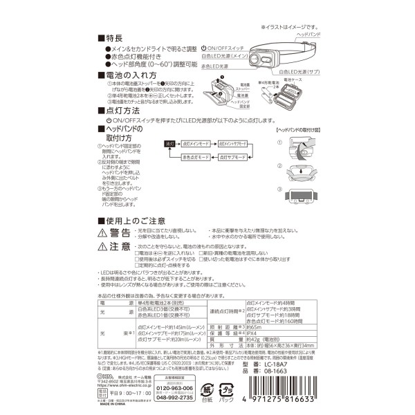 옴전기 LED 헤드라이트 18A7 LC-18A7 옴전기 > 기타
