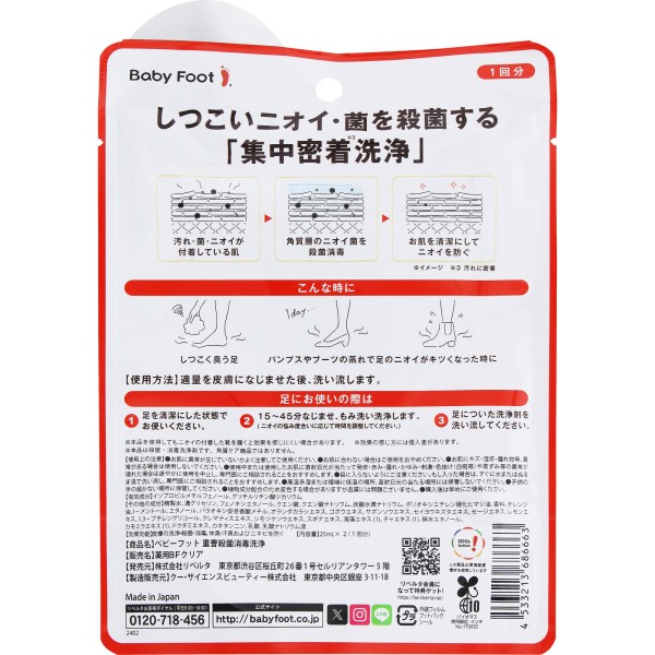 足を洗っても落ちない爪の間や角質層に染みついたニオイを、履くだけのフットパック洗浄剤で角質層のニオイ菌までしっかり洗い落とします。