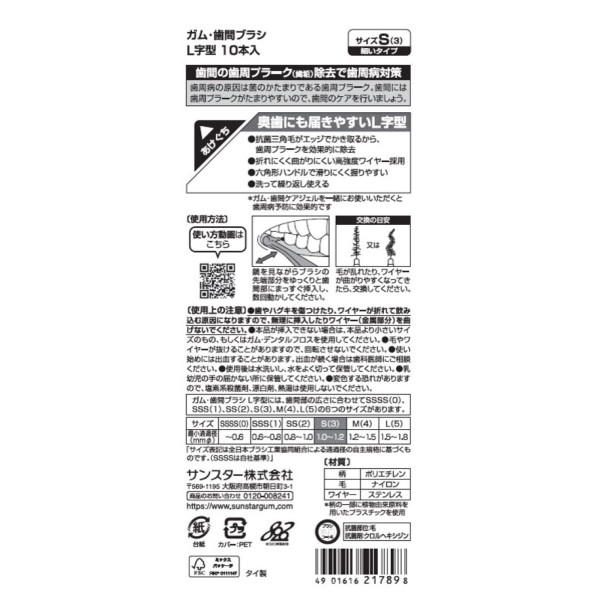GUM 치간 브러시 L자형 S 썬스타 > 치간 브러시