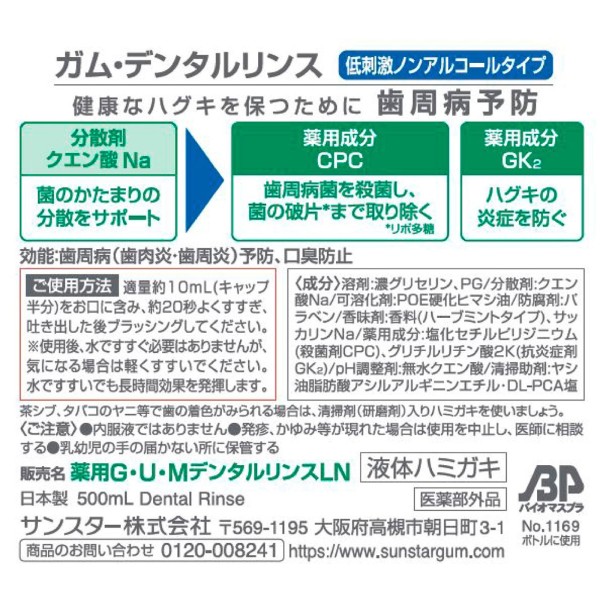 GUM 덴탈 린스 [논알코올 타입] 500ml 썬스타 > 치주병 예방