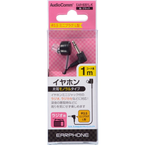 OHM 모노럴 이어폰 1M EAR-B351-K 옴전기 > 오디오 액세서리