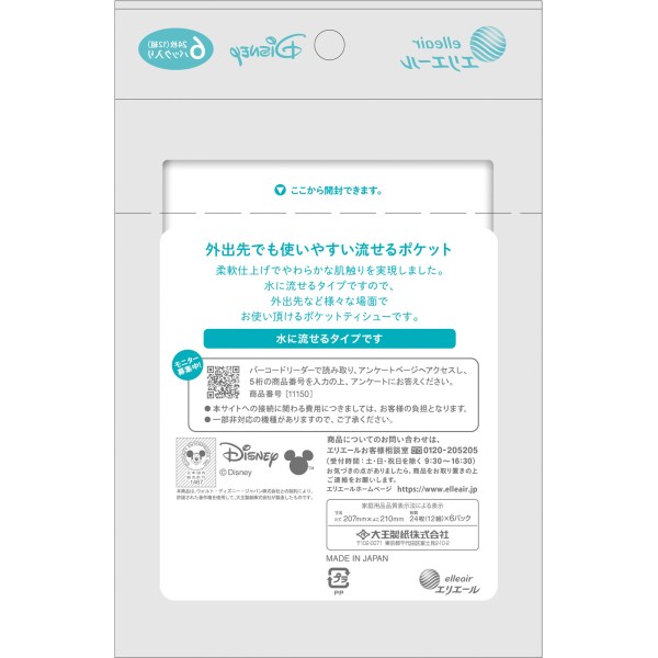 에리에르 디즈니 흘려보내는 포켓(캐주얼) 12W 6P 다이오제지 > 캐릭터 (남녀 공용)